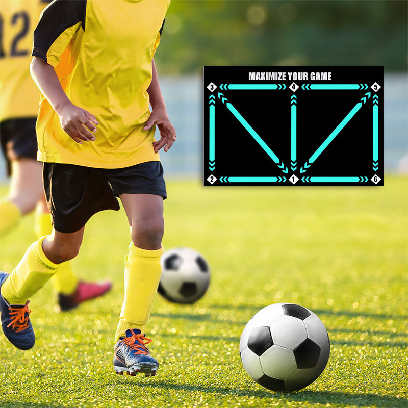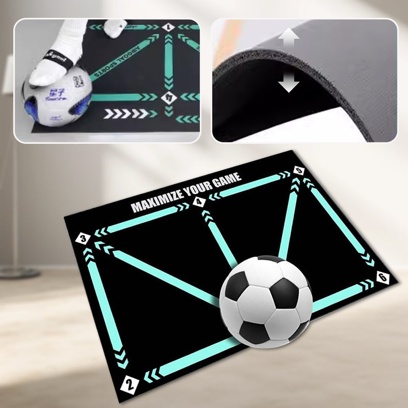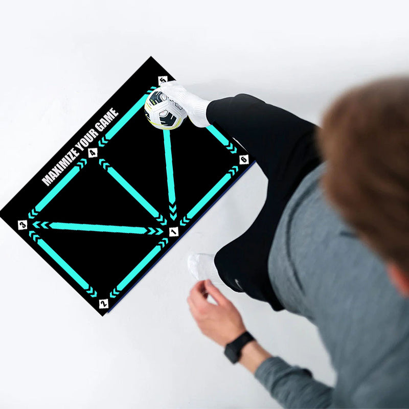 TRÉNING PRÁCE NOHAMI - Táto podložka obsahuje rôzne vzory krokov, ktoré vás prevedú rôznymi cvičeniami práce nohami. Pomáha vám rozvíjať rýchle a presné pohyby, zlepšuje kontrolu nad loptou a manévrovateľnosť.