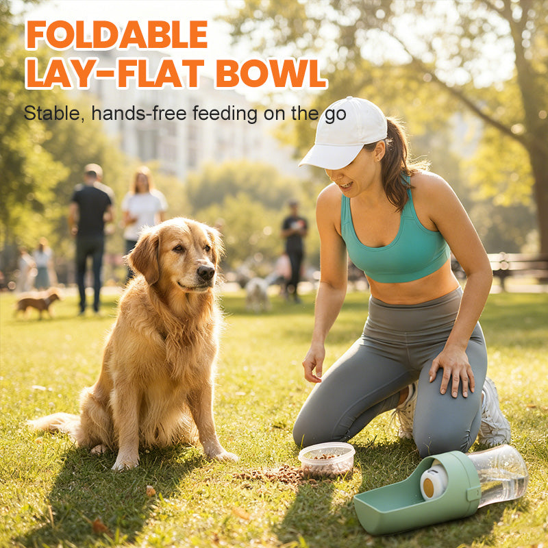180° SKLADACIA MISKA - Miska na vodu sa rozloží a položí na rovnú plochu, čím vytvorí stabilné miesto na kŕmenie bez použitia rúk. Tento praktický dizajn uľahčuje vášmu domácemu maznáčikovi pitie bez toho, aby ste ho museli držať.