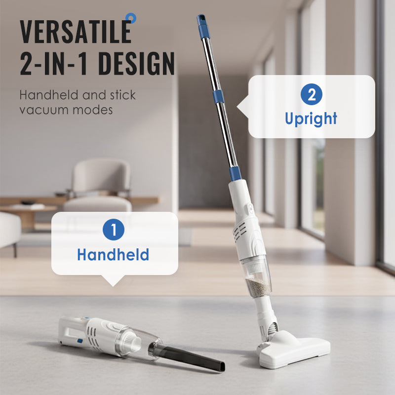 UNIVERZÁLNA FUNKCIA 2 V 1: Okamžite prepínajte medzi kompaktným ručným vysávačom a vysávačom s plnou dĺžkou. Táto prispôsobivosť ho robí ideálnym na čistenie podláh, nábytku, schodov a stiesnených priestorov pomocou jediného zariadenia.
