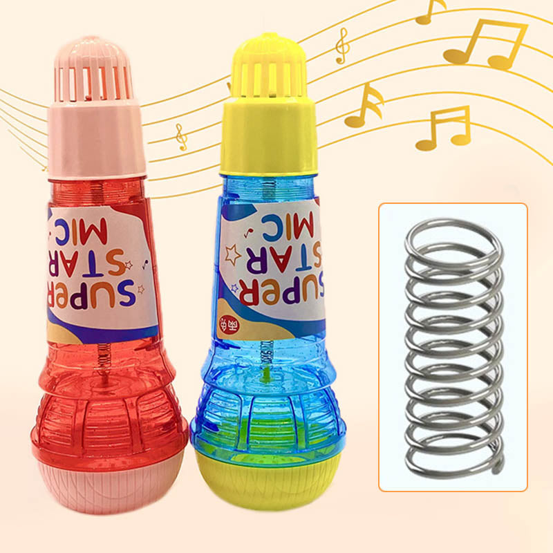 INOVATÍVNY FYZICKÝ ECHO MECHANIZMUS: Mikrofón využíva vnútorný pružinový systém, ktorý fyzicky vibruje, aby zosilnil zvuk, čím vytvára zábavný echo efekt – bez potreby elektroniky.