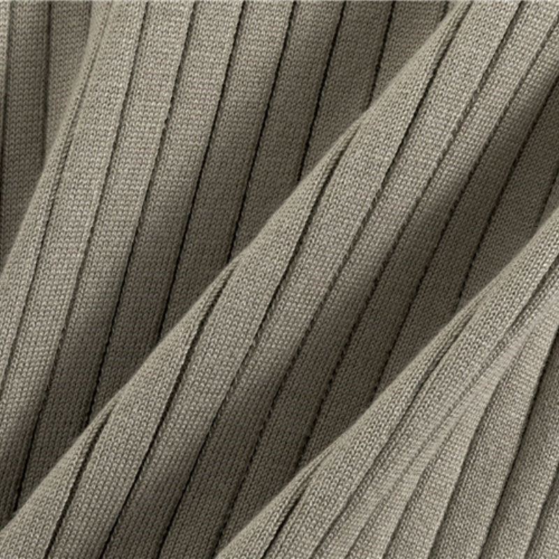 DIZAJN PÁSMOV: Svetrová vesta bez rukávov má pletený vzor vertikálnych pruhov, ktorý dodáva šmrnc a narúša monotónnosť jednofarebných materiálov. Tento dizajnový detail zvyšuje celkovú rafinovanosť súpravy.
