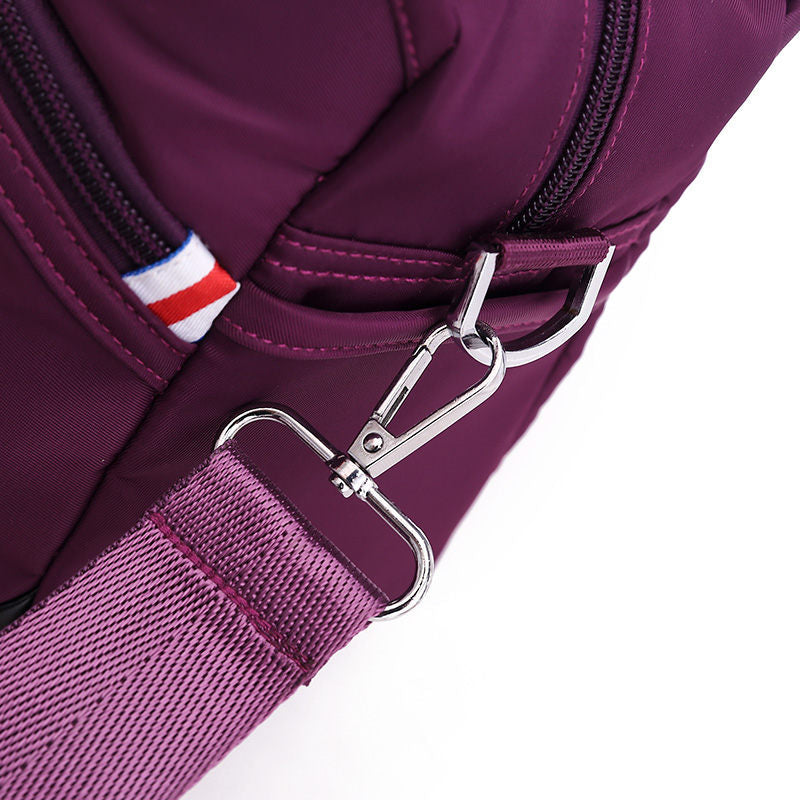 Naša taška cez rameno, jemne spracovaná s vynikajúcim prešívaním a šitím a vyrobená z kvalitného nylonu, je mimoriadne mäkká, odolná a odolná voči striekajúcej vode, aby udržala vaše cennosti v suchu. Keď sa taška zašpiní, jednoducho ju utrite vlhkou handričkou alebo vyperte v práčke.