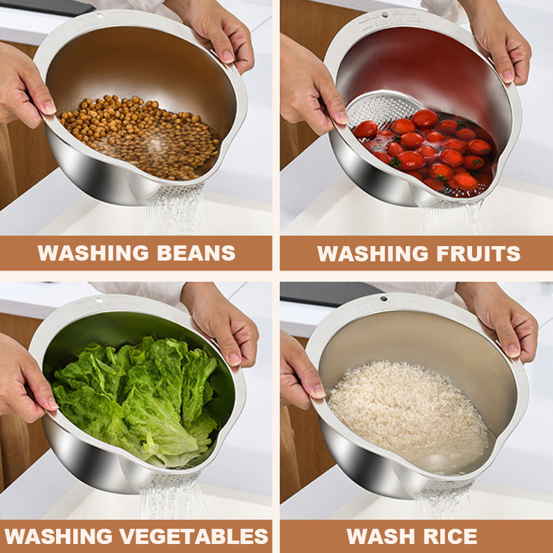 HUMANIZOVANÝ DIZAJN: Vnútri misy je pridaný konvexný dizajn, ktorý účinne zvyšuje trenie a robí umývanie ryže, obilnín atď. čistejším a hygienickejším.