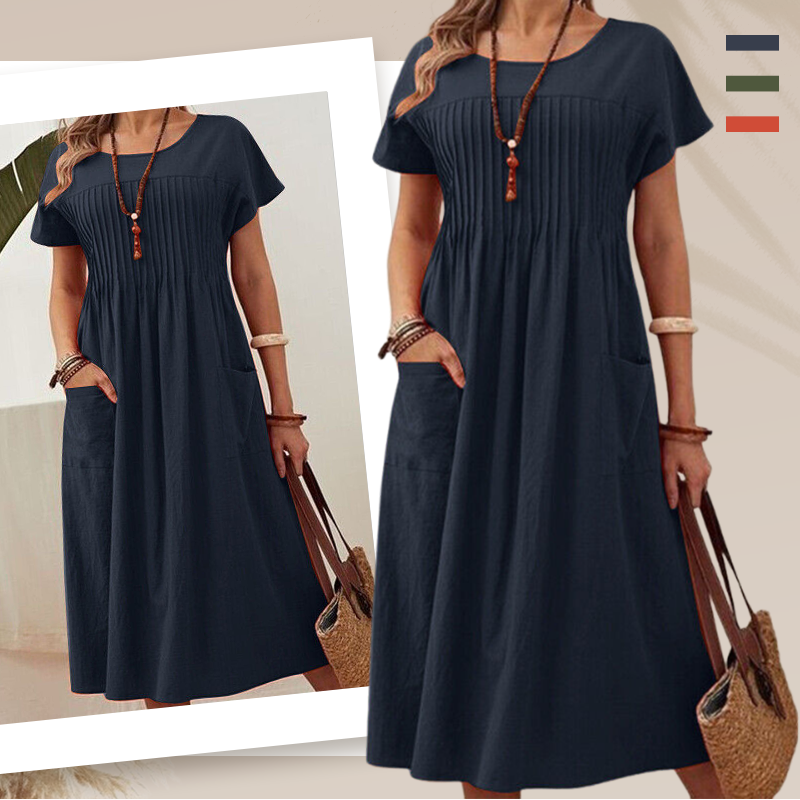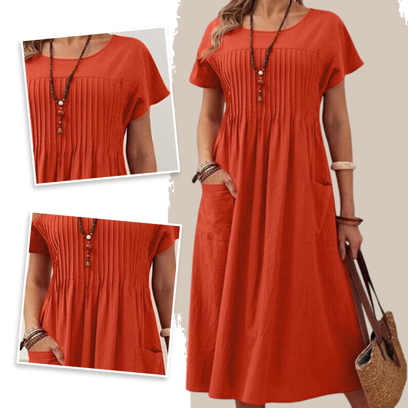 Balíček obsahuje: 1 × dámske plisované šaty s krátkymi rukávmi a vreckami