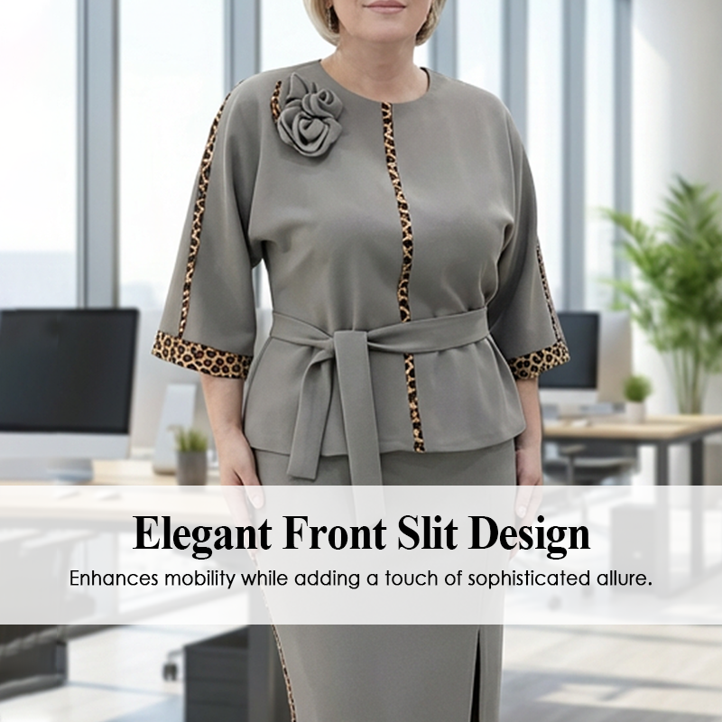 CHIC EMBELLISHMENTS - Discover the perfect harmony of sophistication and edge. This set features a handcrafted 3D floral applique, striking leopard print piping, and a flattering tie-waist for a truly standout look.