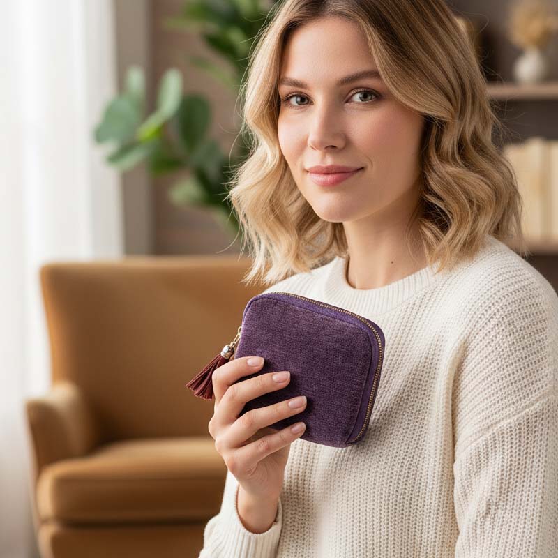 ELEGANTNÝ ZIPS S STUŽKOU - Štýlová stuha dodáva taštičke sofistikovaný vzhľad a zároveň zabezpečuje bezpečné a hladké zapínanie na zips. Zabezpečuje, že vaše šperky zostanú bezpečne uložené vo vnútri taštičky, čím spája módu s funkčnosťou.