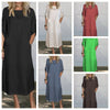 1 * Ženska bombažna in lanena enobarvna ohlapna obleka