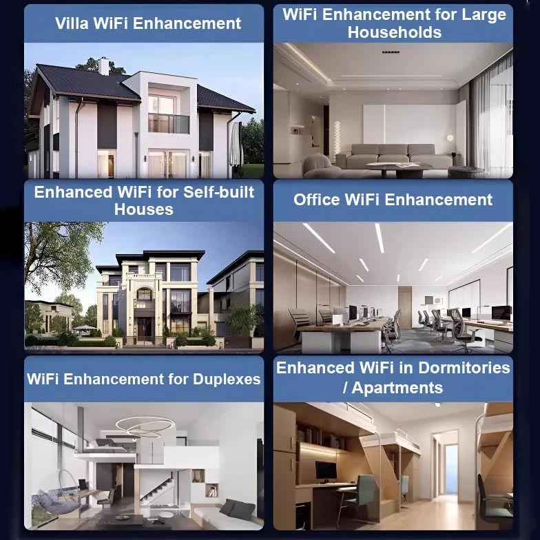 OJAČEVALEC SIGNALA: Vgrajena tehnologija ojačevalnika signala poveča moč brezžičnega signala, s čimer razširi pokritost in izboljša splošni sprejem, zlasti v večjih domovih ali na območjih z motnjami.